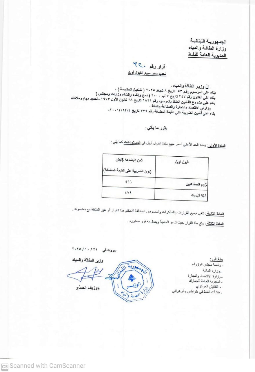 إنخفض اليوم، سعر صفيحتي البنزين 95 و98 أوكتان 14 آلف ليرة والمازوت 12 ألف ليرة وقارورة الغاز 22 ألف ليرة، وأصبحت الأسعار على الشكل التالي: