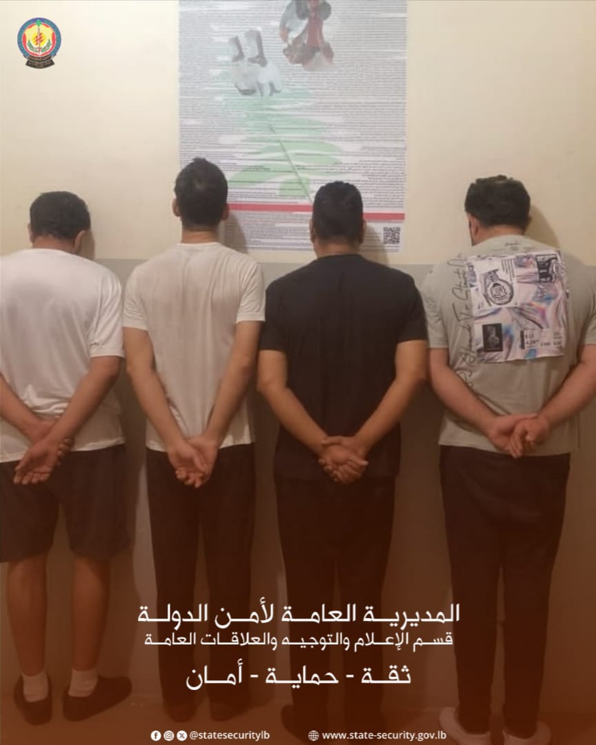 "متابعةً لمهام المديرية العامة لأمن الدولة في ملاحقة المخالفات القانونية في الدوائر الرسميّة وبعد توافر معلومات دقيقة، تمكنت مديرية جبل لبنان الإقليمية – مكتب بعبدا من توقيف أربعة أشخاص، أحدهم من جنسية عربية كان يعمل سمسارًا في الدوائر العقارية في بعبدا، أقدموا على تزوير وثيقة وفاة في دائرة نفوس بعبدا، بهدف إتمام عملية حصر إرث غير قانونية والاستيلاء على عقار وبيعه بطريقة احتيالية.