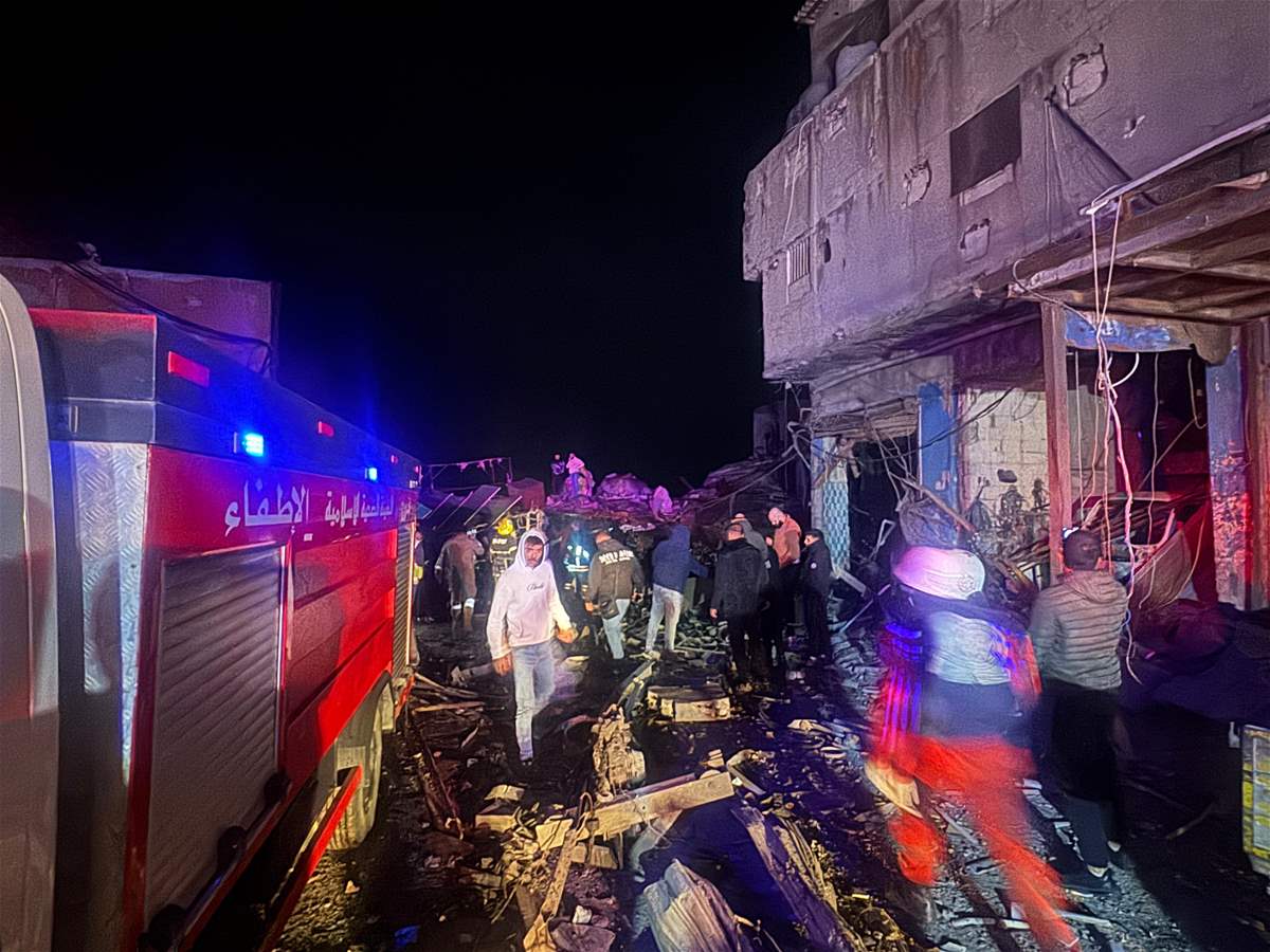 تعمل فرق الدفاع المدني على إخماد حريق اندلع في مبنى مجاور للمكان المستهدف