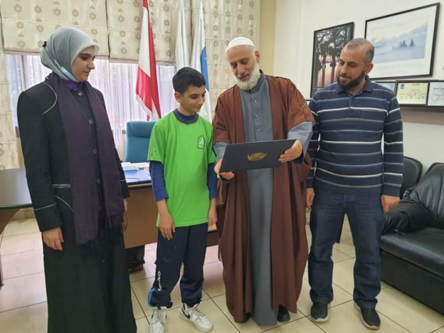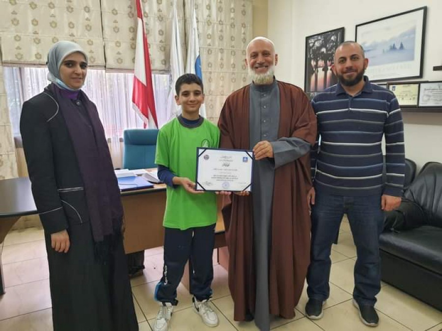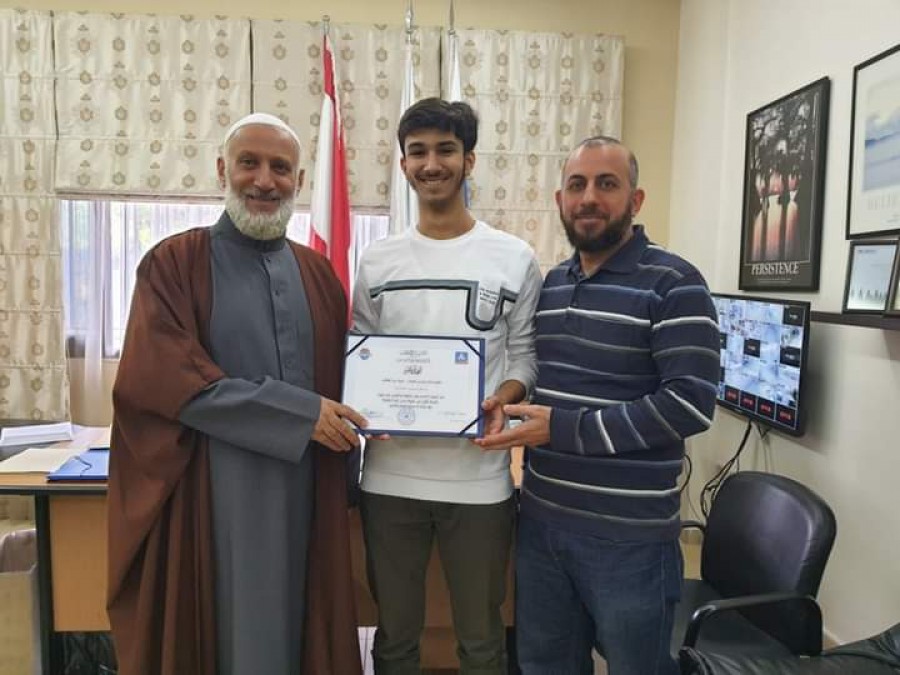 كرّم مدير مدارس الإيمان الشيخ مصطفى الحريري الطالب بسام محمد صفديه من الصف الثاني عشر لفوزه بالمركز الأول في بطولة لبنان بكرة الطاولة.