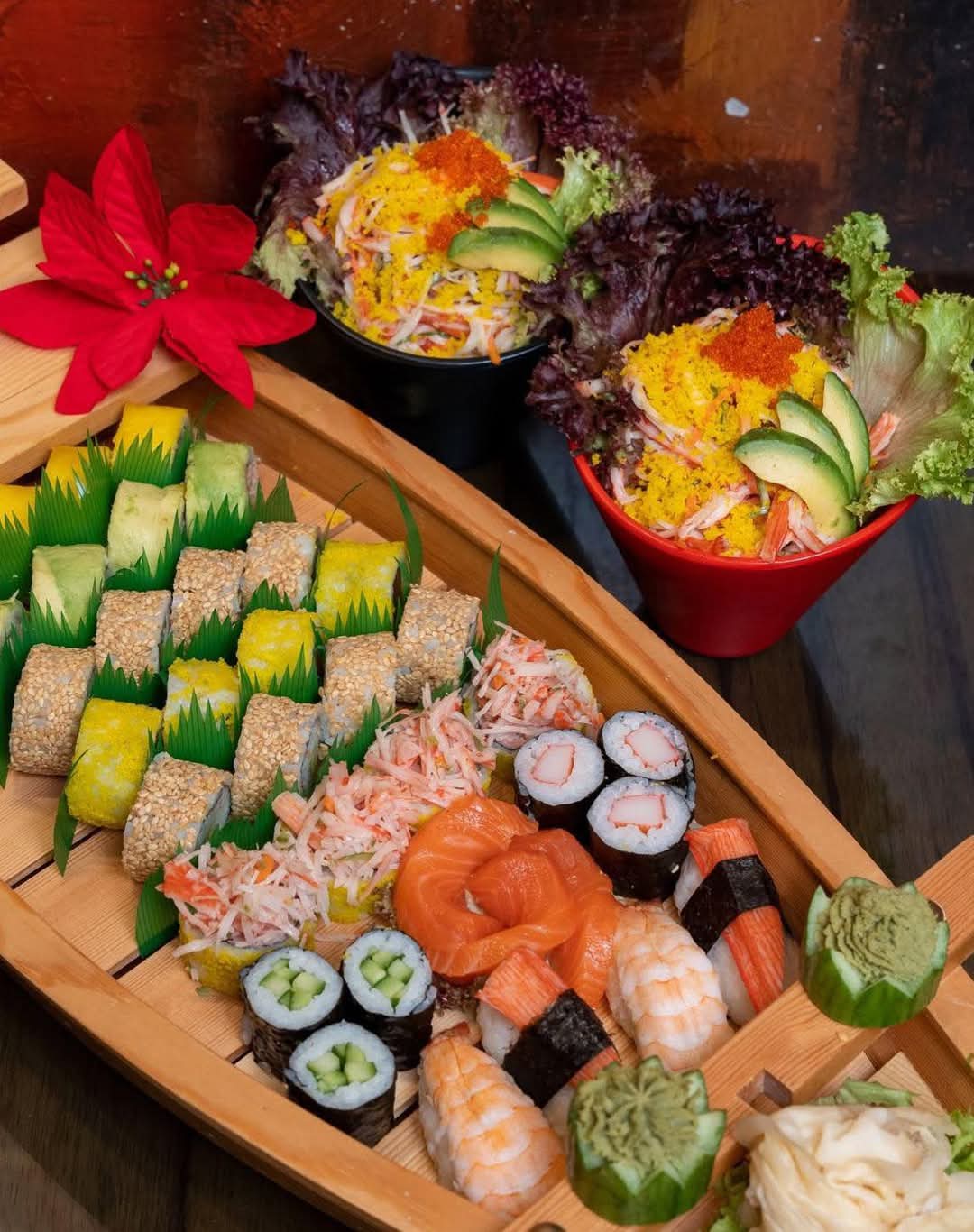 يتميز المطعم بتقديم مجموعة متنوعة من المأكولات، وخاصة السوشي الذي يُرضي كافة الأذواق، من السوشي التقليدي إلى السوشي المُعاصر الذي يتم تحضيره بطرق مبتكرة.