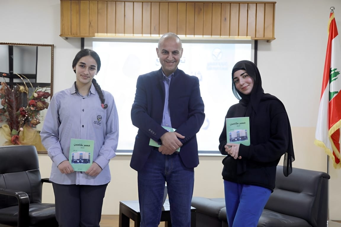 وفي الختام ، فاجأ الدكتور ناصر الدين الزميل نعيم بإهدائه كتابًا يتضمن تغطيته الصحفية لنشاط مسير بكاسين الذي نظمته الثانوية قبل أشهر مدعّمًا بالصور. وقدم له ناصر الدين بكلمات معبرة. كرمت بعدها إدارة السفير الإعلامي نعيم ، فقدمت له الأستاذة إيناس سليمان هدية باسم الثانوية. وبدوره أهدى نعيم الدكتور ناصر الدين درعًا تكريمية تضمنت بعض نتاج مواكبته الإعلامية لأنشطة السفير عربون شكر وتقدير على مبادرته.