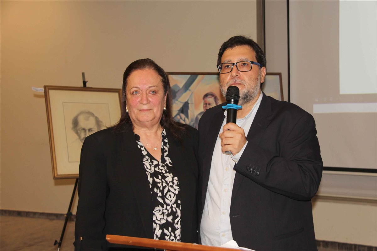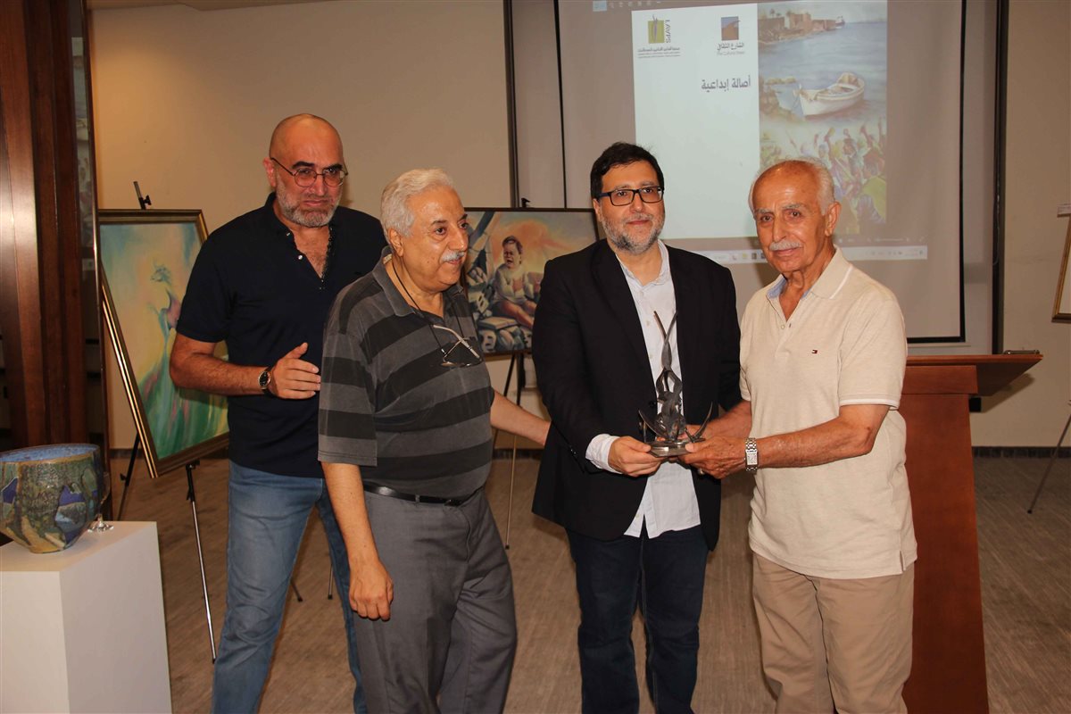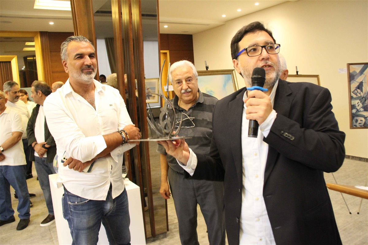 وقال: هدفنا اليوم ان نلتقي ونتحاور فيما بيننا في اطار اهداف جمعية الشارع الثقافي التي تأسست عام 2005 بأن تكون الثقافة والفن جزءاً اساسياً من بناء المجتمع على أسس صحيحة ، ومن هذه القناعة وبالتعاون مع جمعية الفنانين اللبنانيين للرسم والنحت التي تاسست سنة 1957 . نلتقي اليوم في هذا المعرض لنكرم قامتين فنيتين بارزتين ولمتابعة المسيرة والمزيد من الزخم والعمل المشترك .