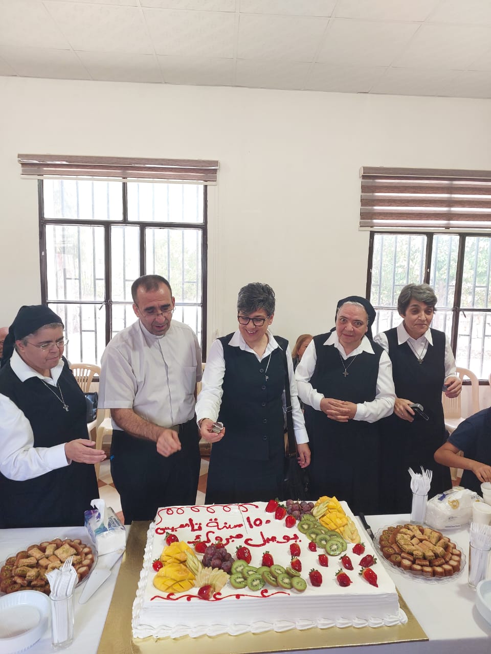 والقت رئيسة الدير الأخت صونيا العجيل كلمة ترحيبية بالمناسبة. وفي الختام شكرت الأم نجار جميع الذين عملوا لإنجاح الإحتفال، وجرى قطع قالب حلوة بالمناسبة.