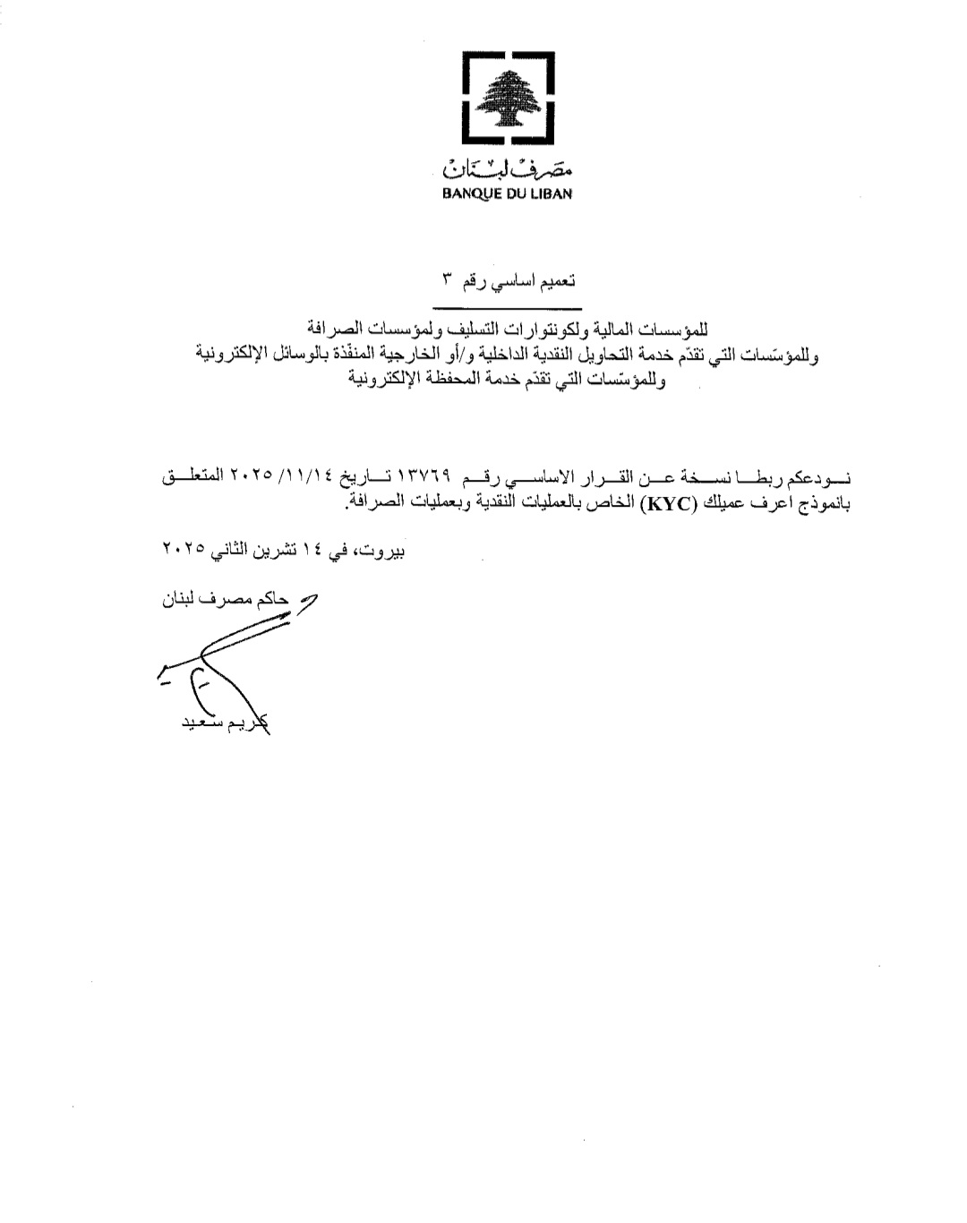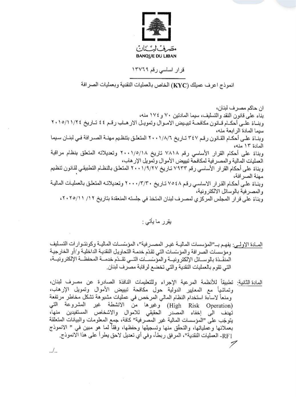 وأوضح البيان أنّ مصرف لبنان اتخذ اليوم الخطوة الأولى ضمن سلسلة من الإجراءات الاحترازية الهادفة إلى تعزيز بيئة الامتثال داخل القطاع المالي. وتتمثل هذه الخطوة في فرض الإجراءات الوقائية على جميع المؤسسات المالية غير المصرفية المرخّصة من قبل مصرف لبنان، بما في ذلك شركات تحويل الأموال وشركات الصرافة، وغيرها من الجهات التي تتولى عمليات التداول بالأموال النقدية بالعملات الأجنبية وتحويلها من لبنان وإليه.