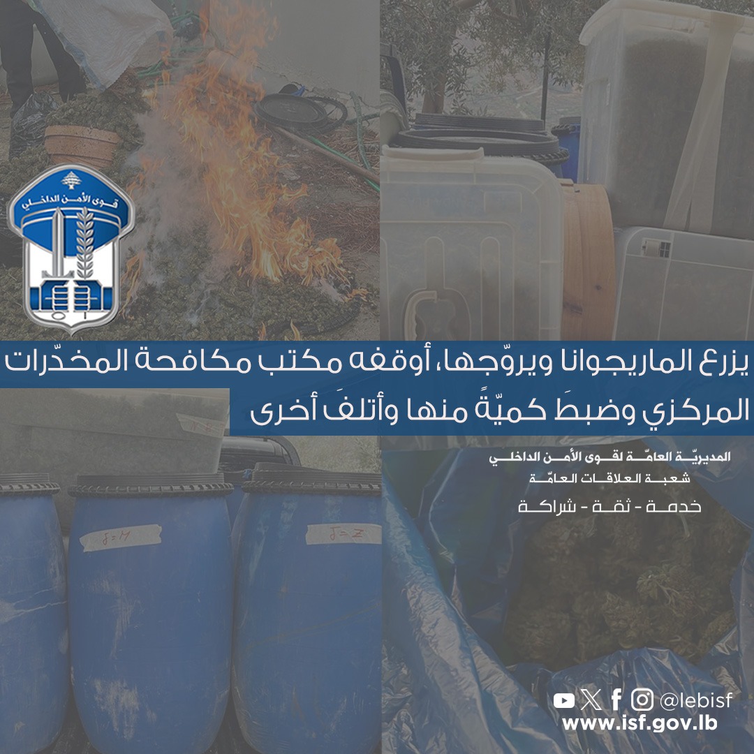 يزرع الماريجوانا ويروّجها... أوقفه مكتب مكافحة المخدّرات المركزي وضبطَ كميّةً منها وأتلفَ أخرى