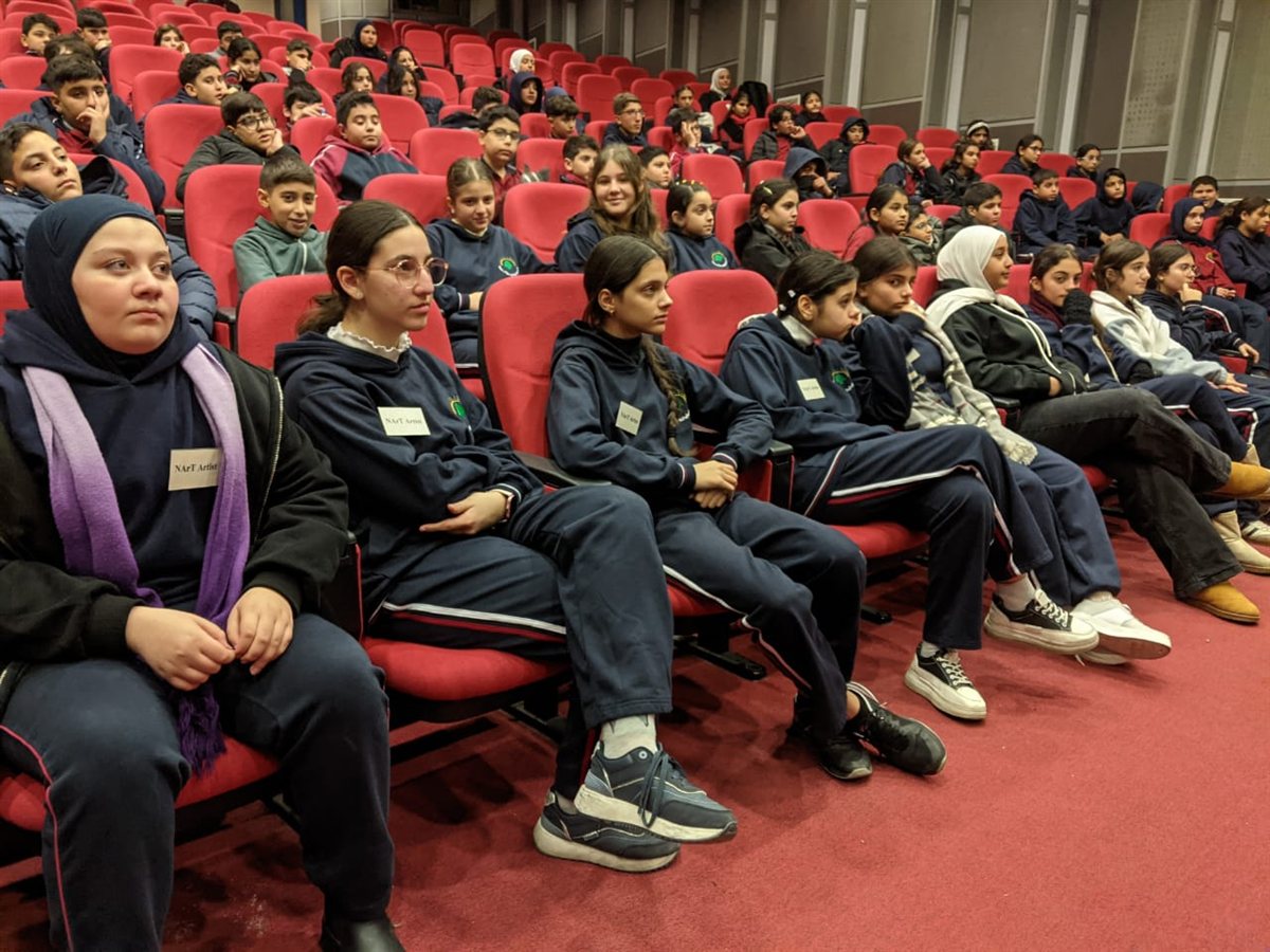 - 👩🎓 التجربة التربوية: مشاركة طلاب الصف السادس الأساسي وأعضاء نادي الفن NArts#، ما يعكس دمج الفن في الحياة المدرسية.