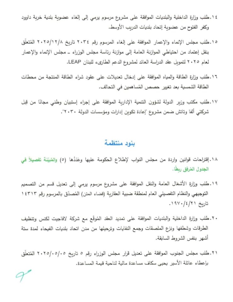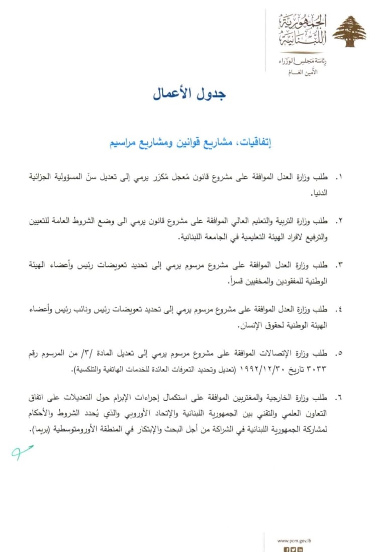 جلسة لمجلس الوزراء... إليكم جدول أعمالها