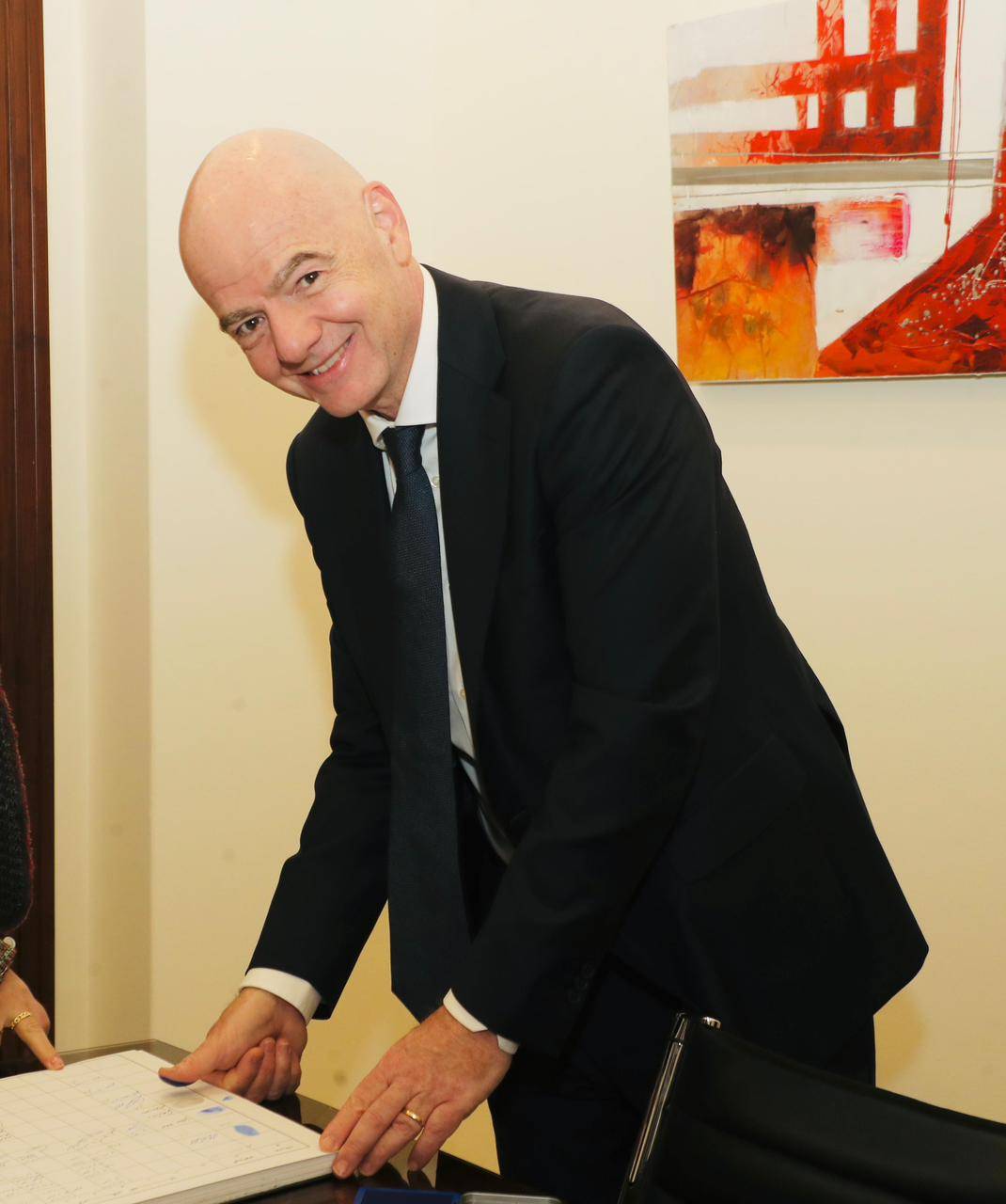 وكان إنفانتينو قد وصل إلى بيروت في زيارة رسمية تستمر يوماً واحداً، برفقة عائلته، حيث كان في استقباله حيدر والشحف، وممثل مكتب "فيفا" في دبي عصام السحيباني.