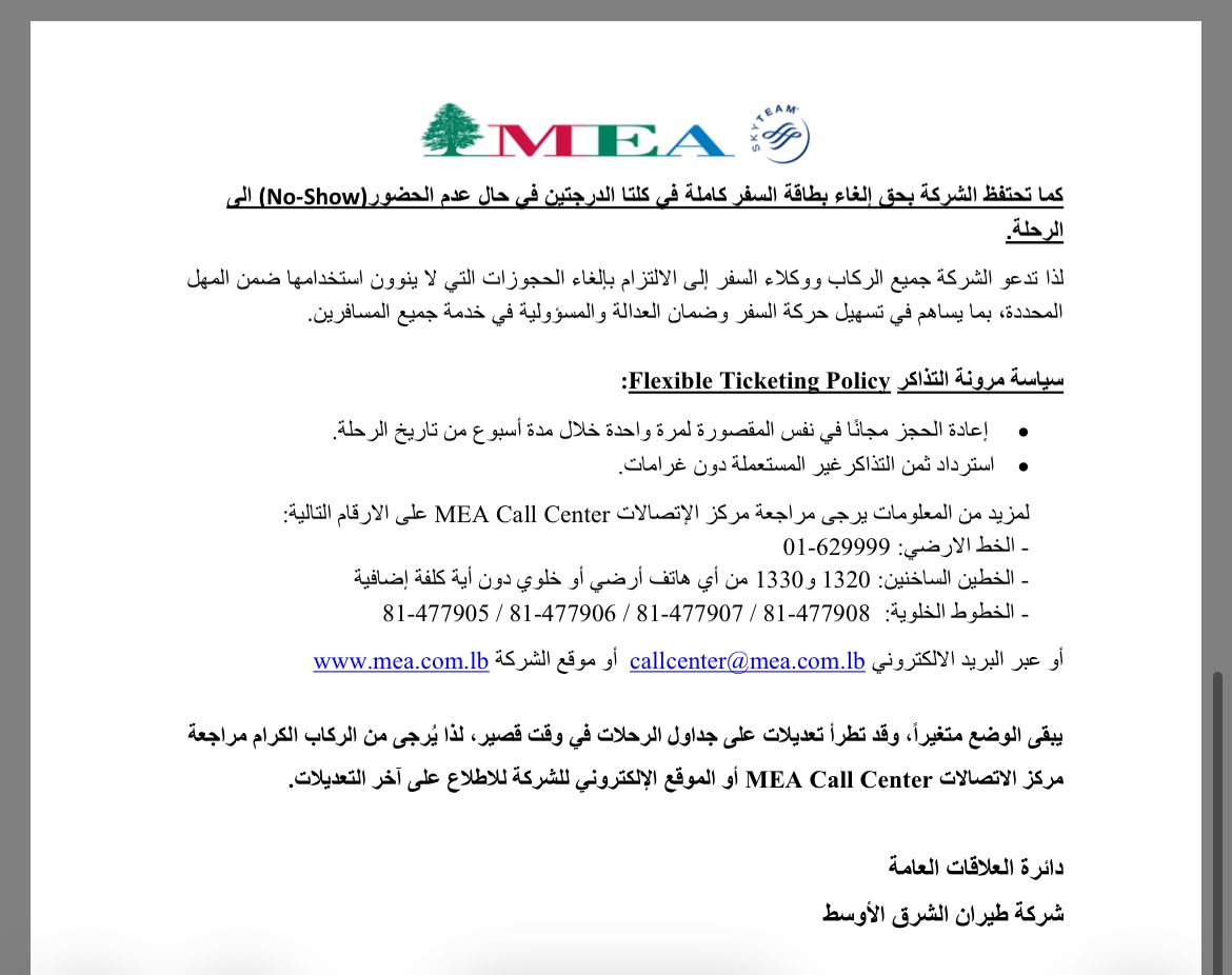 بيان جديد من شركة طيران "الشرق الأوسط"... هذه تفاصيله