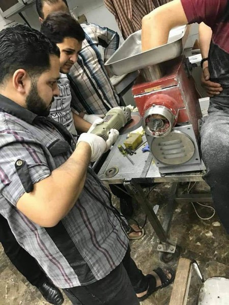 وجرت محاولات لاخراج يده من الماكينة والاستعانة بأحد اصحاب محلات ادوات التقطيع وتم باستخدام آلة تقطيع معادن كهربائية.