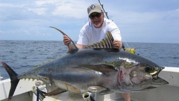 نجح 3 صيادين أيرلنديين في اصطياد سمكة تونة عملاقة من نوع التونة ذات الزعانف الزرقاء يبلغ طولها 8 أقدام وتزن 600 رطلا.