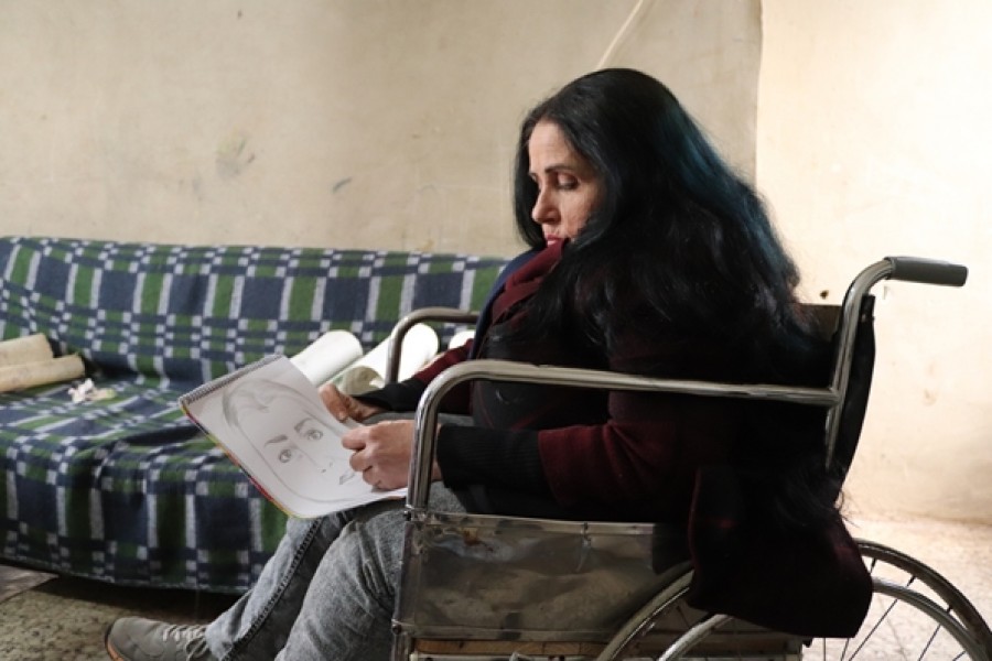 بين كفرسوسة في دمشق وبين ريف اللاذقية، تنقّلت نرجس لتكمل سنوات عُمرها الخمسين. عُمر لم يكن عليها سهلاً. الشَلَل الذي صاحبها منذ الولادة، منعها من مُرافقة الأطفال إلى مقاعد الدراسة فبقيت أسيرة جدران المنزل. لكن أمنية الذهاب إلى المدرسة ولو على كرسي مُدوَلب، لم تغادر روحها.