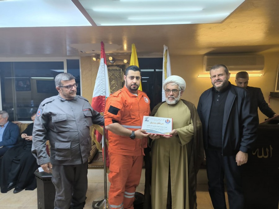 الحاج علي، ألقى كلمة هنأ في مستهلها المكرمين بحلول شهر رمضان المبارك، ومباركا بالشهداء المسعفين الذين بذلوا دماءهم من أجل نصرة أهلهم في البلدات الحدودية ودعم صمودهم منوها بالتضحيات التي تبذلها طواقم الإطفاء والانقاذ والإسعاف من جهود مباركة في مواجهة الإعتداءات الصهيونية على اهلنا وعلى مراكز تلك الجمعبات.