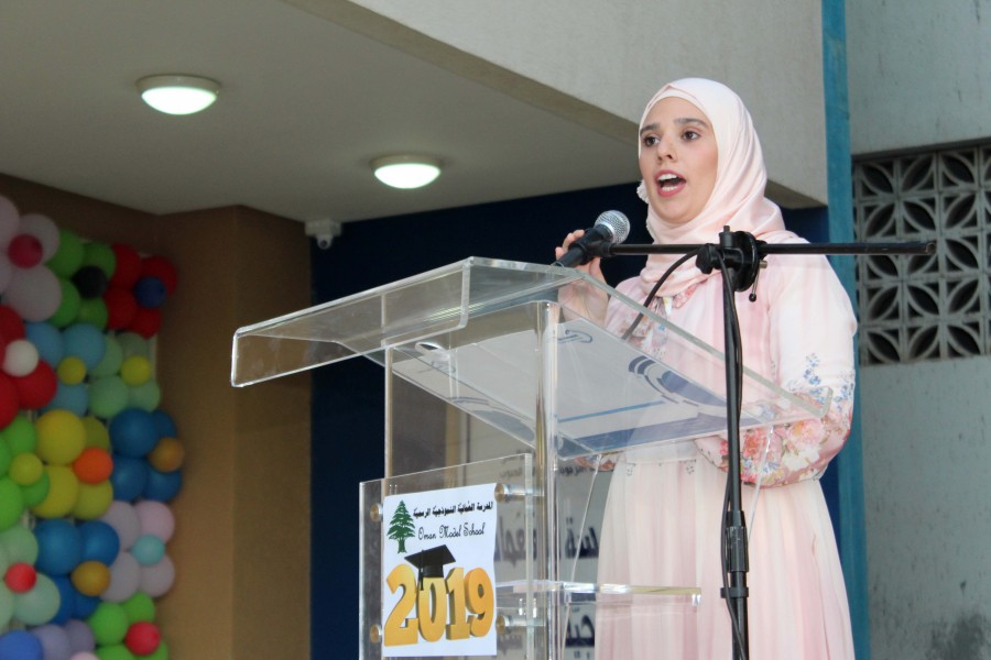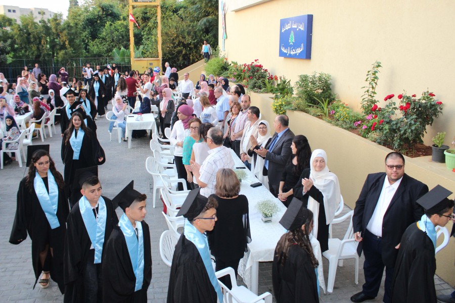 استهل الحفل بالنشيد الوطني اللبناني وكلمة ترحيب من المعلمة سارة الحلاق ، تحدث بعدها مدير المدرسة حذيفة الملاح فتوجه بداية الى الخريجين بالقول "اعلموا انكم ما وصلتم الى ما انتم عليه اليوم الا بتوفيق الله وفضله ثم بالبذل والاجتهاد ثم بثقتكم بانفسكم ودعم اهلكم ودعاء امهاتكم وابائكم . لقد آمنا بقدراتكم يوم ساوركم الشك وقلتم لا نستطيع، واخذنا بأيديكم حين حاولتم ، واليوم نحتفي بكم وبنجاحكم وانه لمن دواعي سرورنا ان نحتفل اليوم بغرسكم الذي اورق وازهر وزرعكم الذي اينع . كونوا كالورد اينما كنتم فاح شذاكم وملأ الآفاق، احرصوا على العلم والمثابرة عليه والجد في طلبه بكل ما يتصف به طالب العلم من اداب واخلاق".
