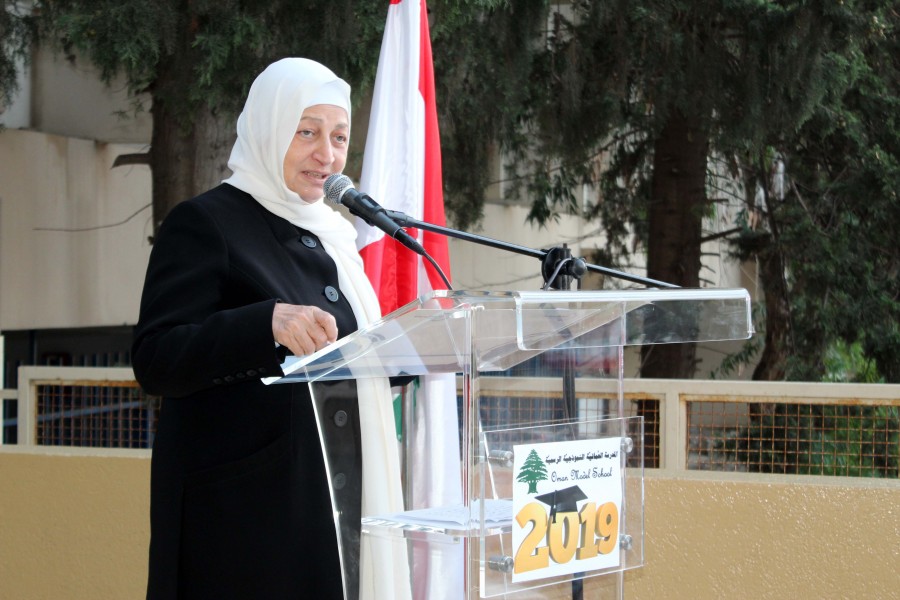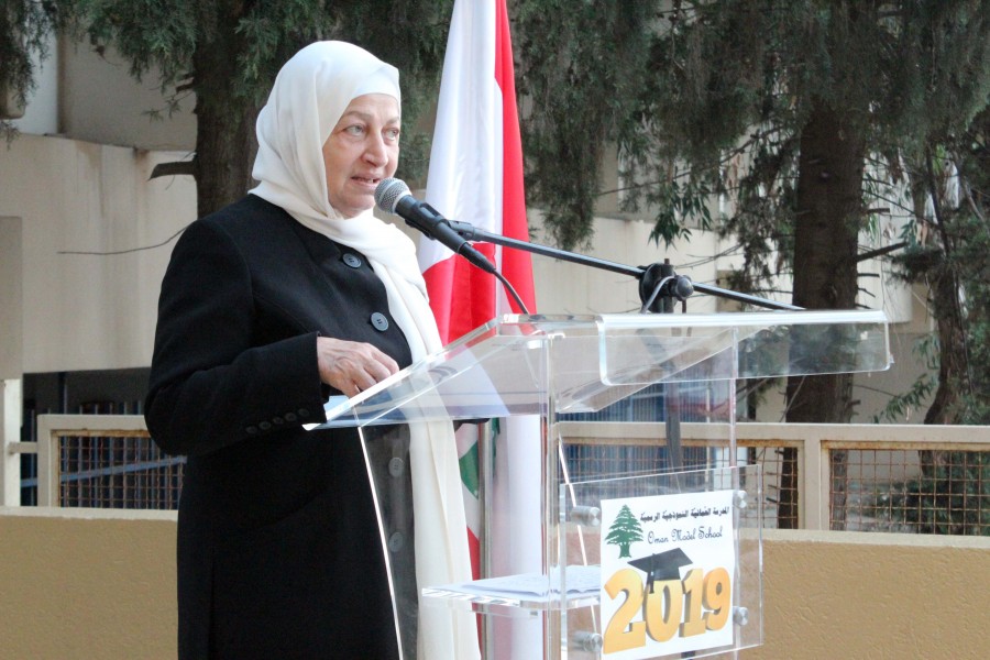 واضافت : عندما طلب مني الأستاذ حذيفة رعاية حفل تخرج قلت له دعها حفلة عائلية لكنها جاءت في وقتها خاصة بعد الحملة التي لم تكن في مكانها حول موضوع قبول الطلاب الفلسطينيين عنده في المدرسة. نحن نعتبر انه من الطبيعي ان تستضيف مدارسنا في مدينة صيدا الفلسطينيين لأن اسمنا عاصمة الشتات ولدينا اكبر مخيم في لبنان .واذا كان عدد سكان المدينة 100 الف نسمة فسكان المخيم 100 الف، ولا يمكن تطبيق نسبة العشرة في المائة علينا ، وبالنهاية كان الحل موجودا وحتى قبل ذلك كنت اقول لهم طمئنوا الناس . لكن هذه السنة قاسية على الجميع وانا كنت سعيدة عندما قال لي الأستاذ حذيفة" عندي 140 طالباً جديداً لبنانيين فيهم حسب القانون فلسطينيون ". اي أن المدرسة الرسمية والمدرسة العمانية النموذجية تحديدا عليها طلب واقبال لأنها مدرسة ناجحة ومدرسة نموذجية يقصدها الطلاب لأنها ناجحة فمبروك لصيدا ومبروك لنا بوجود استاذ مثل حذيفة وكل المدراء الباقين نجلهم ونحترمهم .